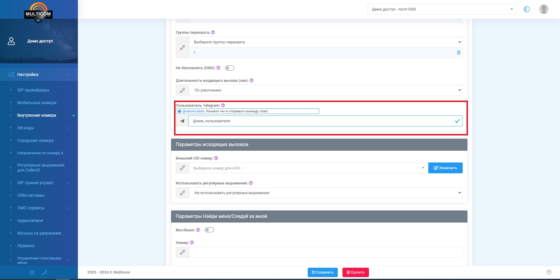 1️⃣ — обратитесь к администратору АТС, чтобы он добавил вашего пользователя Telegram к вашему внутреннему номеру.